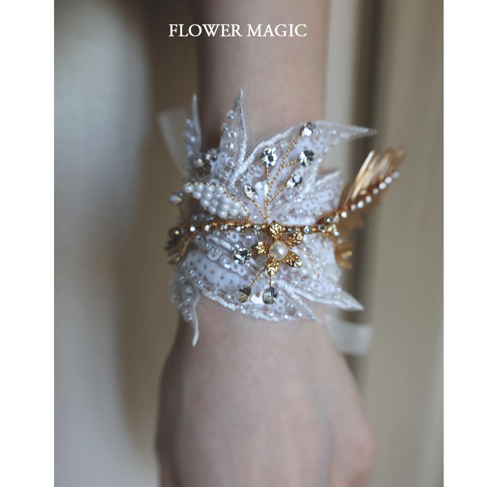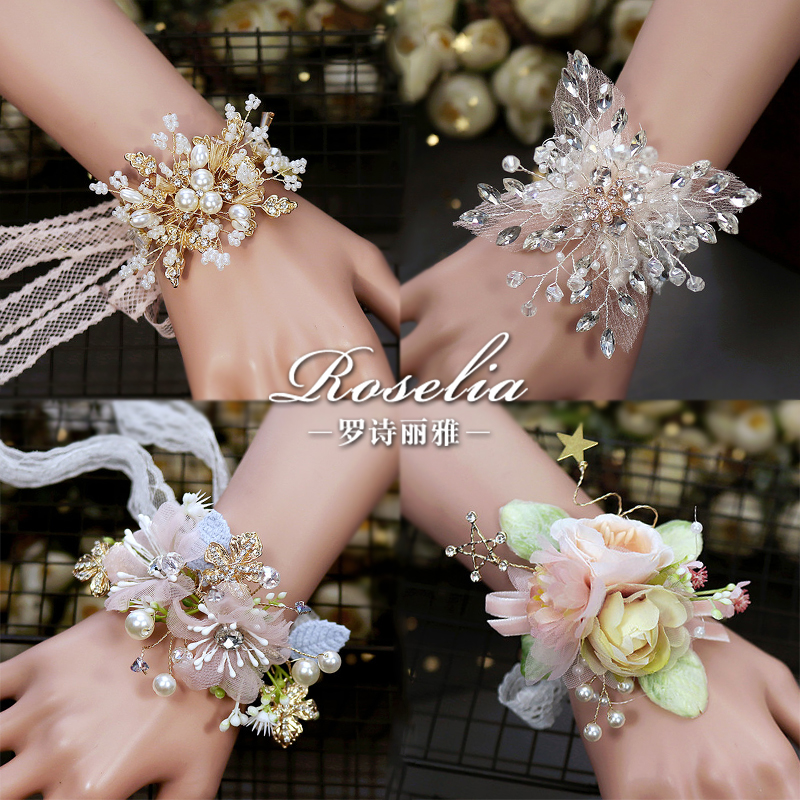 米珠蕾絲水晶閃閃唯美公主高級唯美新娘伴娘結婚禮服手腕花手環花