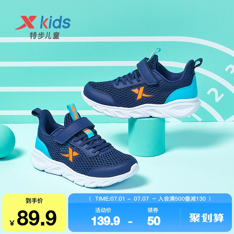 特步童鞋夏季新款兒童網面透氣跑鞋男童魔術貼軟底運動鞋大童鞋子