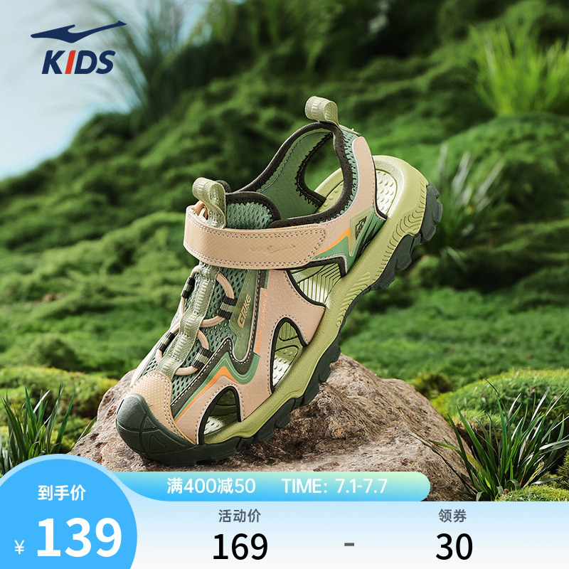 鴻星爾克童鞋男童涼鞋2025夏季新款兒童運動鞋中大童包頭沙灘鞋子
