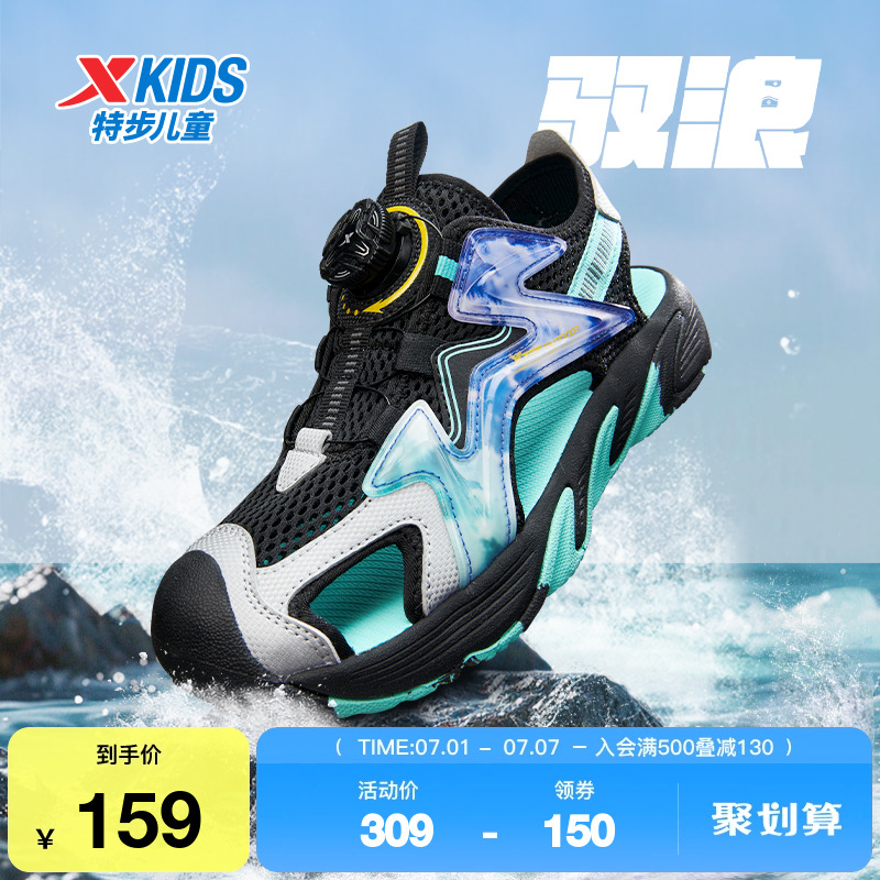 特步童鞋兒童夏季新款男童旋轉紐扣涼鞋大童包頭溯溪鞋防滑沙灘鞋