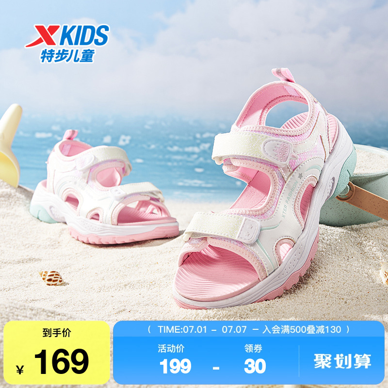 特步童鞋女童運動涼鞋夏季新款兒童溯溪鞋女孩防滑大童露趾沙灘鞋