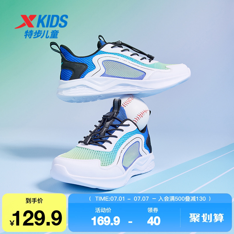 特步童鞋夏季款中大童網面透氣兒童運動鞋子男童束口扣防滑跑步鞋