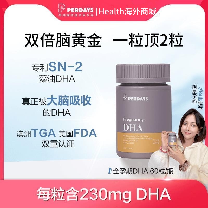 perdays孕產婦專用DHA全孕期藻油軟膠囊哺乳期60粒每瓶原裝進口