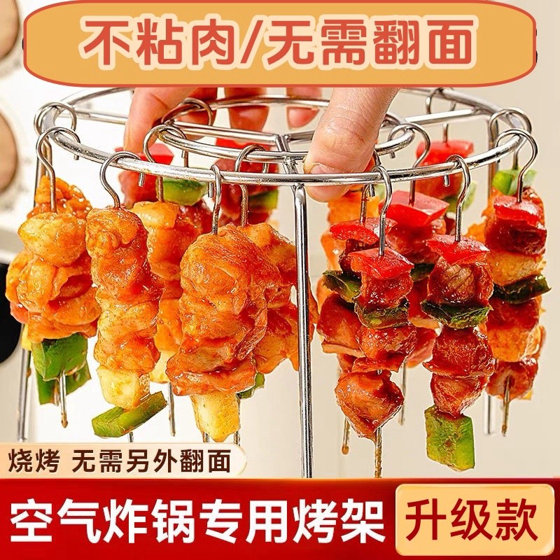 新款烤架空氣炸鍋專用烤串圓形吊掛不銹鋼烤架家庭廚房燒烤戶外