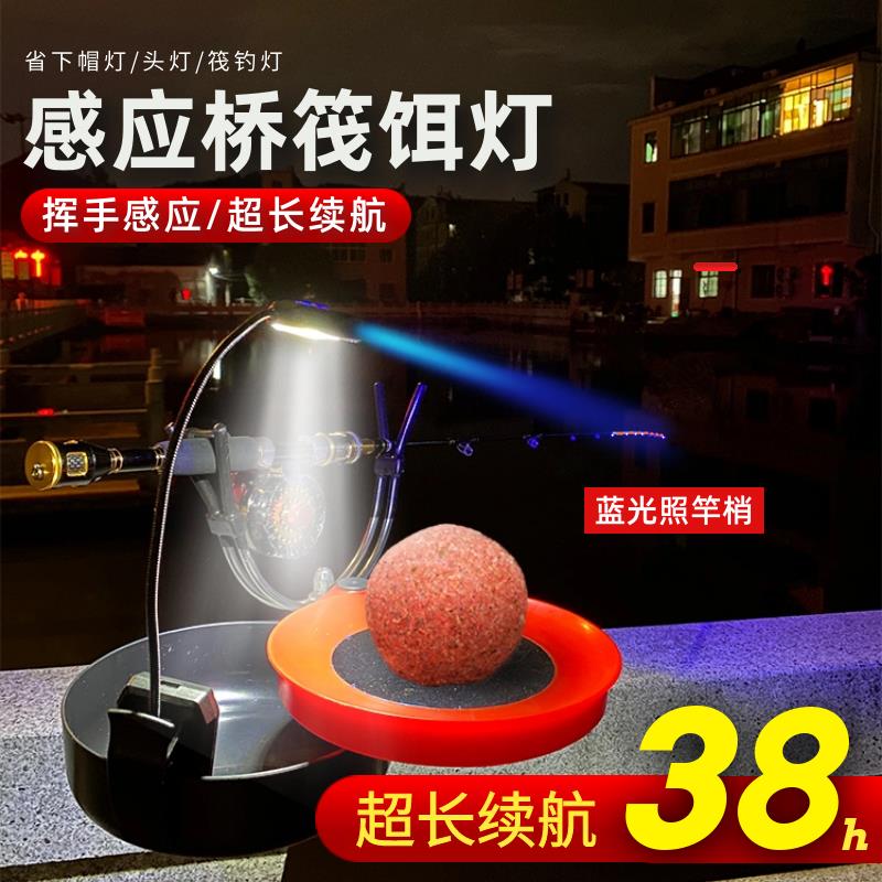 感應橋筏燈筏釣燈釣魚藍光燈LED夜釣燈橋釣燈桿梢燈竿稍燈上餌燈