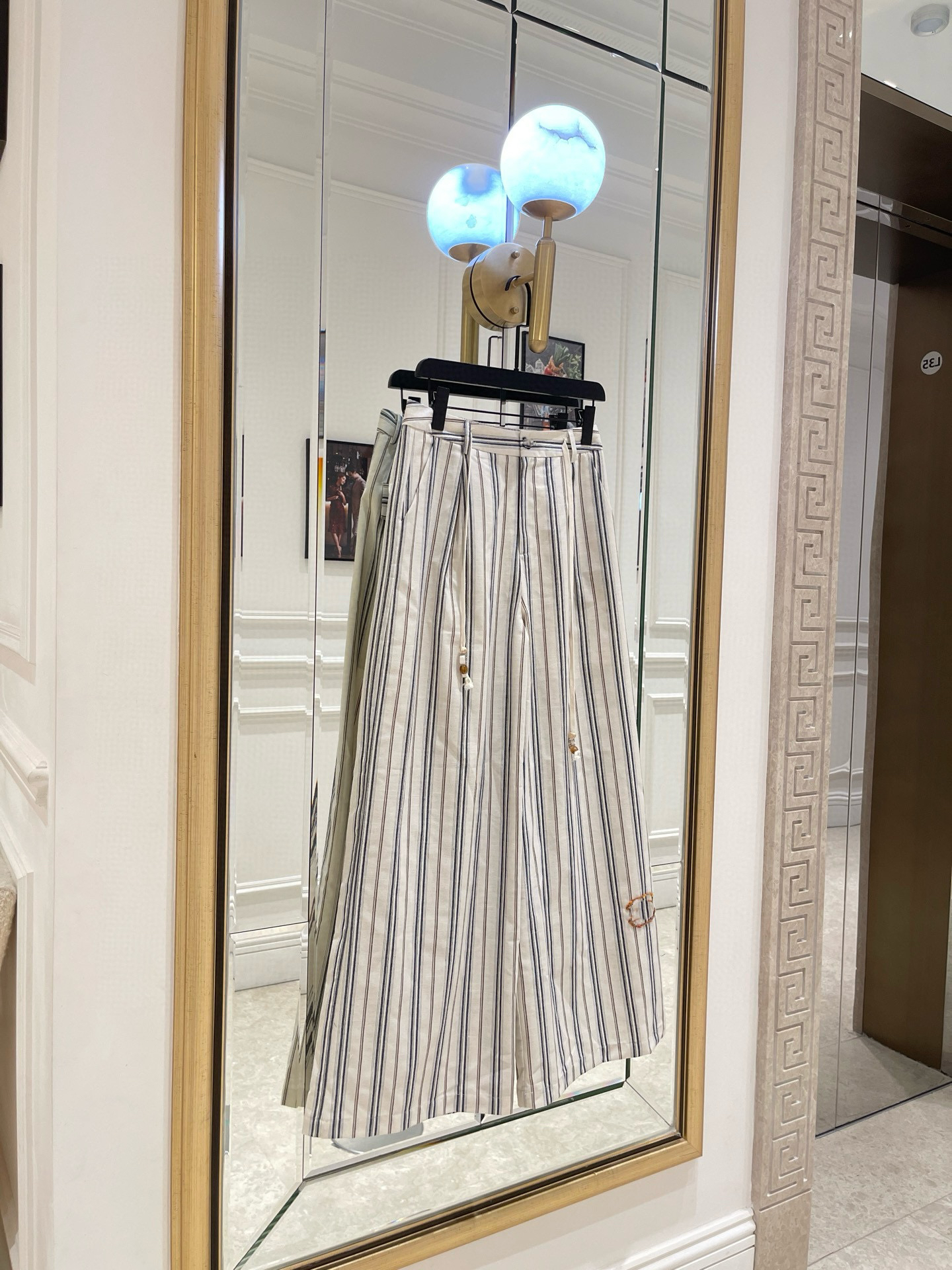 某潮牌24夏小香風防曬薄款條紋闊腿褲麻料慵懶仲古風字母刺繡長褲