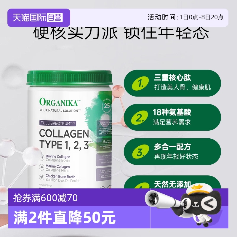 【自營】organika增強123型膠原蛋白肽成人粉劑小分子美膚強骨
