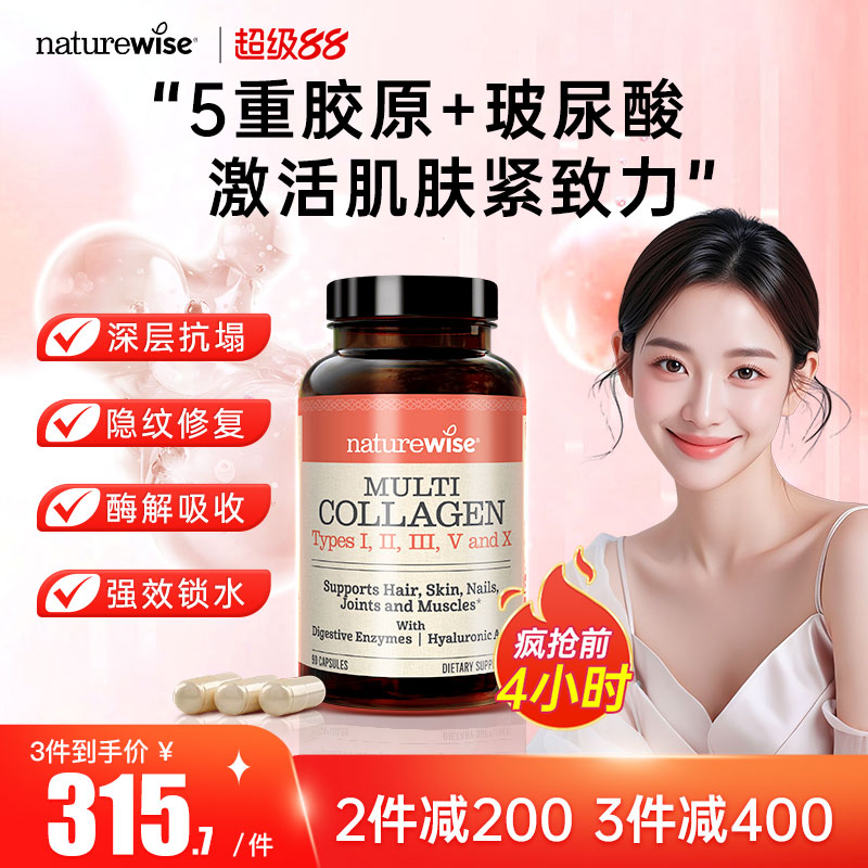 Naturewise多重膠原蛋白內服水解膠原蛋白肽彈力蛋白美白膠囊非片