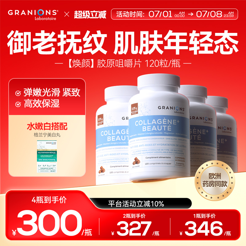 [新品.法國小姐同款]格蘭寧御齡膠原蛋白肽御老撫紋彈嫩膚咀嚼片