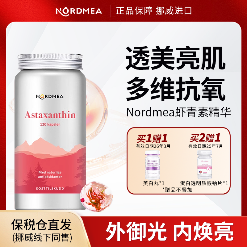 挪美nordmea 挪威進口蝦青素軟膠囊 精華膳食營養雨生紅球藻