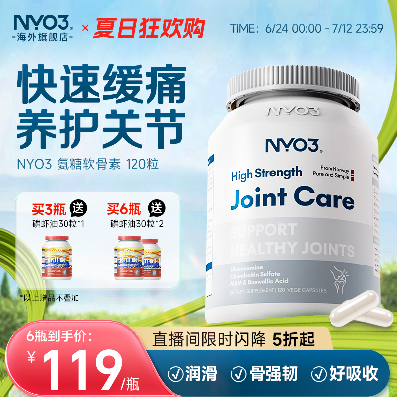 NYO3挪威進口氨糖軟骨素維骨力中老年骨骼關節鈣片膠囊內服精華