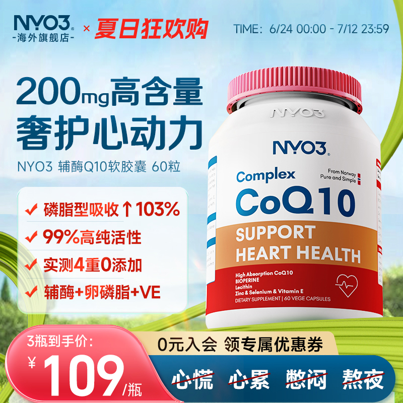NYO3輔酶q10泛醌挪威原裝進口心血管保護心臟素官方旗艦店正品
