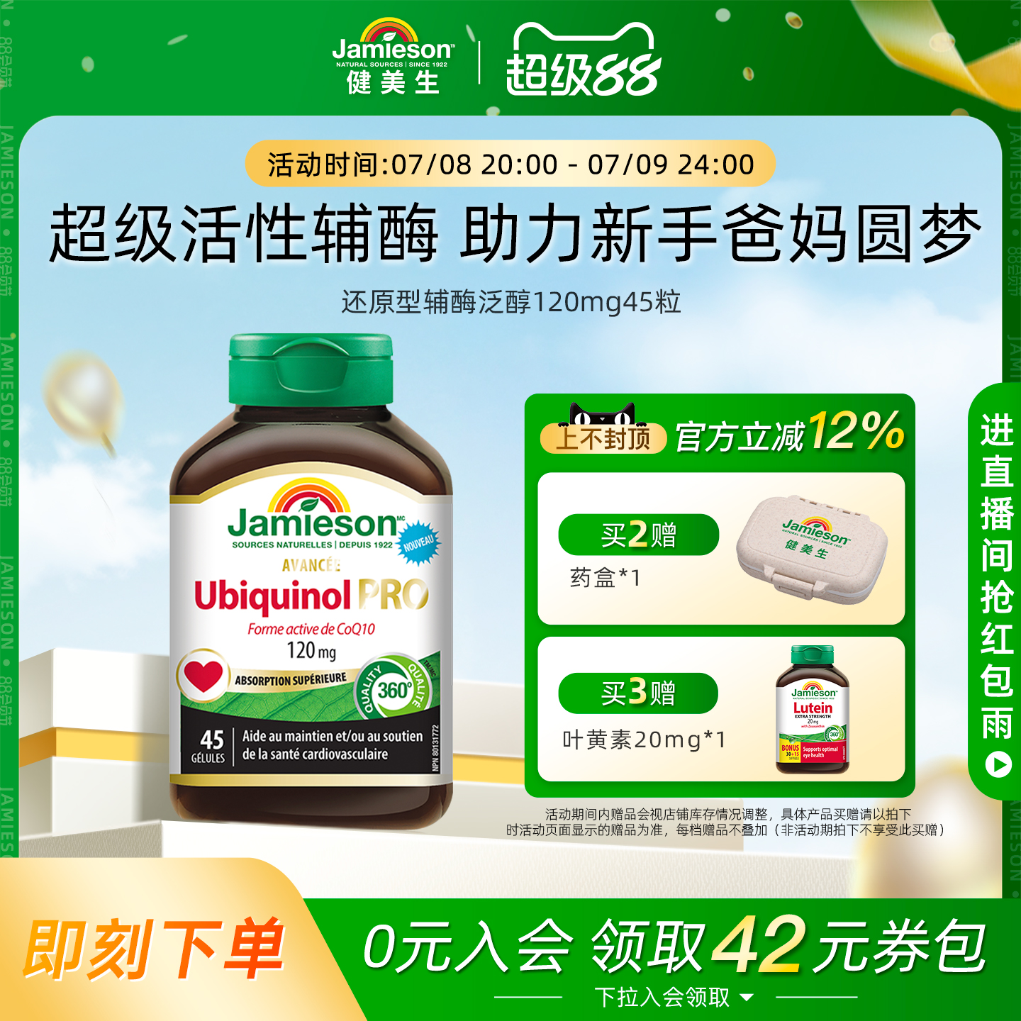 Jamieson健美生還原型活性輔酶q10泛醇加班熬夜保護心臟120mg