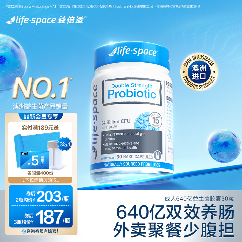 阿里健康澳洲進口lifespace中老年人益生菌呵護爸媽腸胃大順菌2瓶
