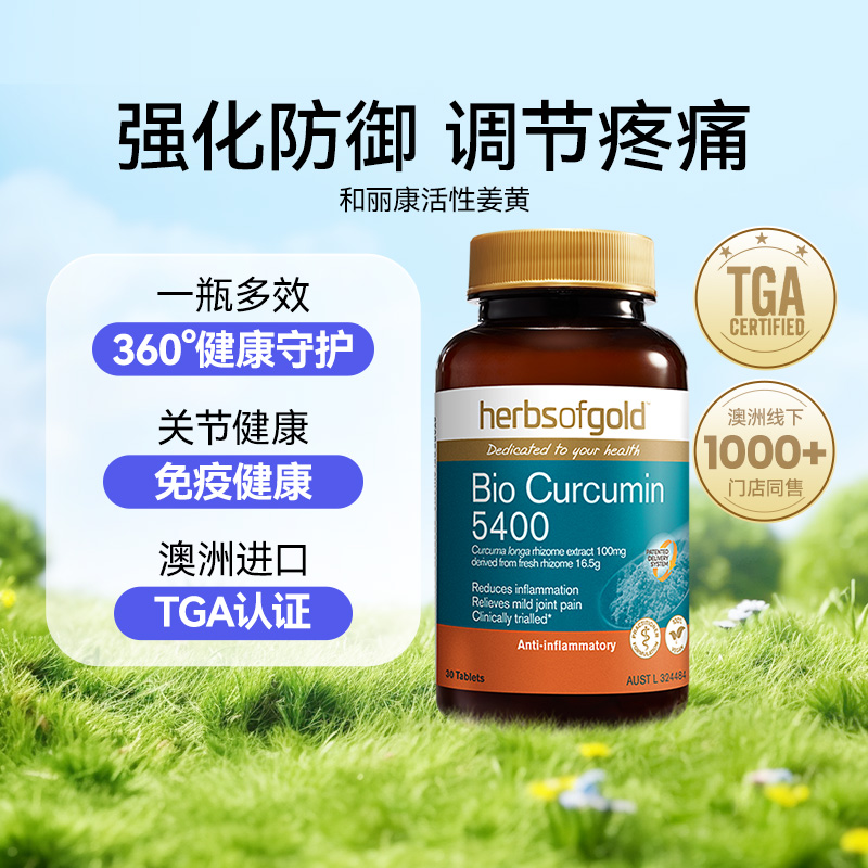 herbsofgold活性姜黃素片調節疼痛全身熬夜和麗康30片*1