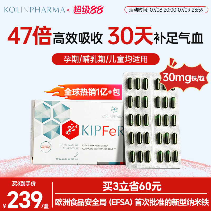 【3盒】科聆寧納米鐵補鐵膠囊意大利補鐵劑貧血孕婦補氣養血缺鐵