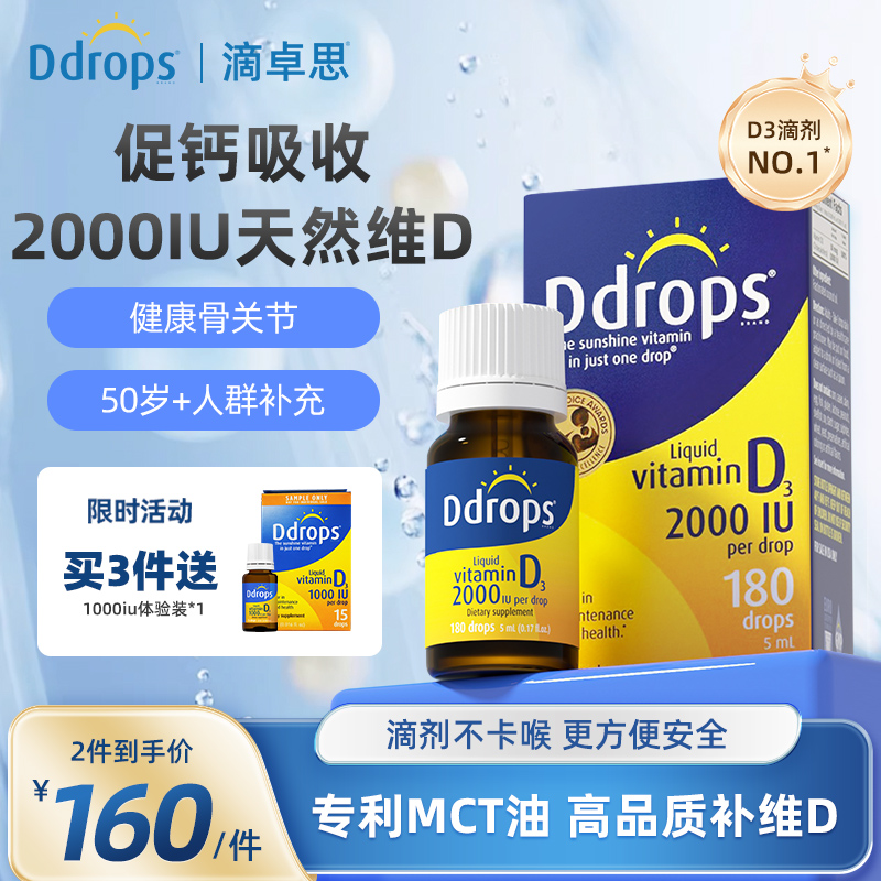 Ddrops滴卓思維生素d3成人滴劑女性中老年vd3陽光滴進口維d2000iu