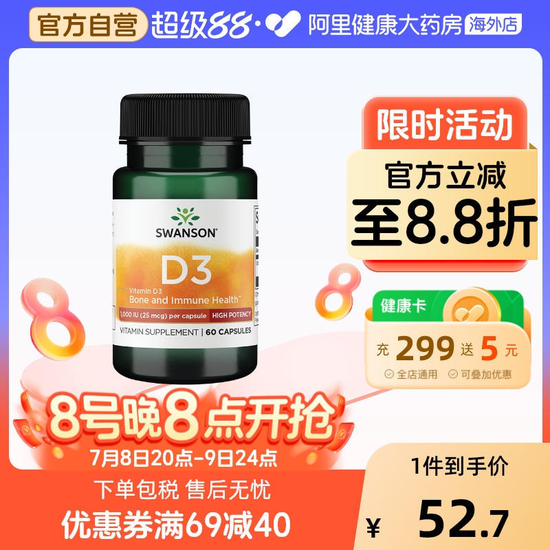 Swanson斯旺森活性維生素d3膠囊60粒 1000IU兒童學生vd3進口正品