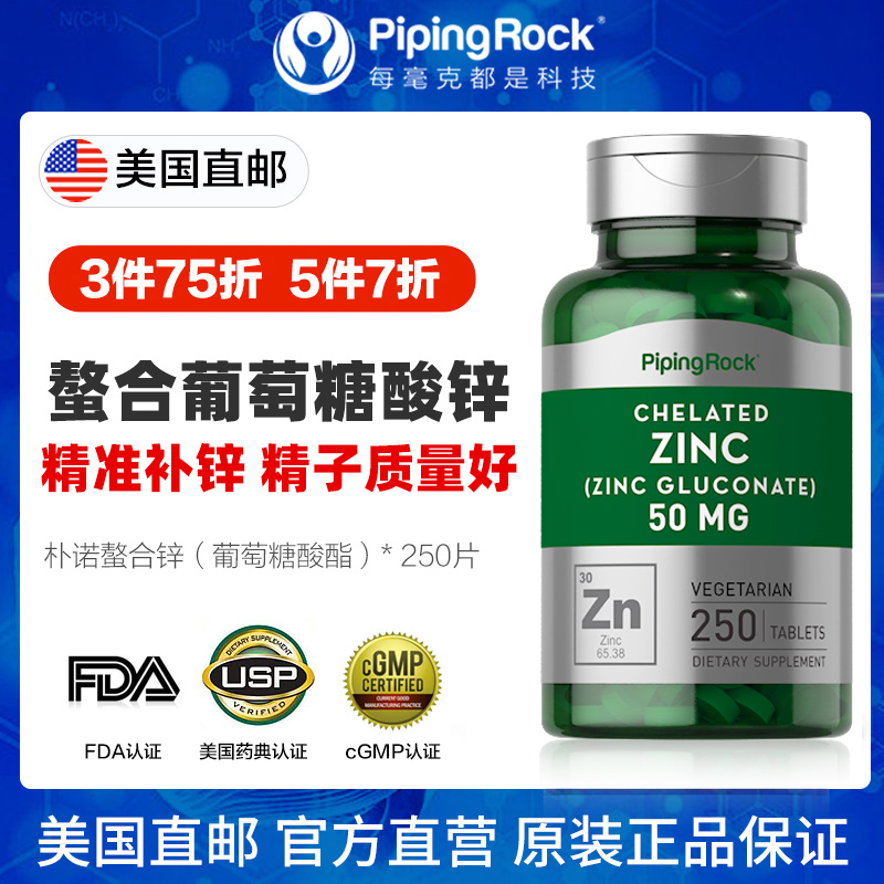 250粒 樸諾螯合鋅美國進口zinc鋅片男女士葡萄糖酸補鋅元素維生素