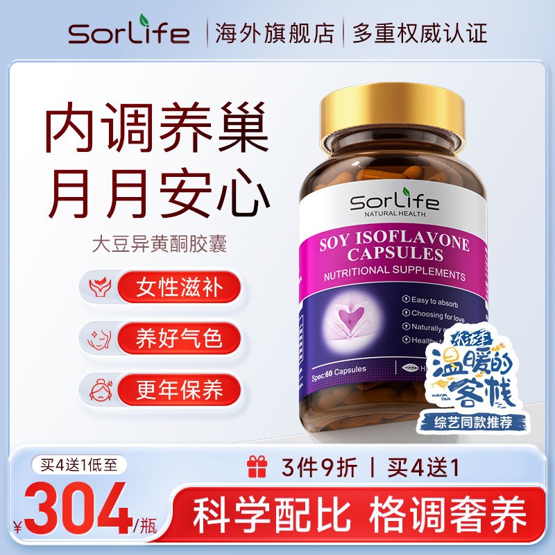 sorlife大豆異黃酮膠囊天然雌激素女性補充調理更年期保養保健品