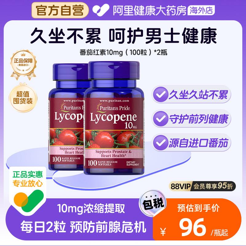 2瓶普麗普萊番茄紅素軟膠囊10mg100粒美國進口蕃茄紅素男士西紅柿
