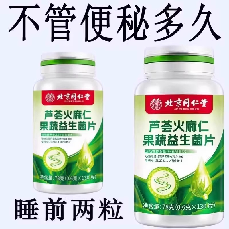 北京同仁堂蘆薈火麻仁益生菌100片清腸通便排便宿便便秘潤腸通便