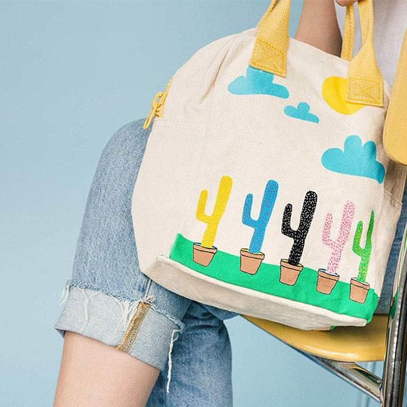 有機棉手拎包便當包飯盒袋裝飯盒的拉鏈手提袋午餐袋帆布環保袋