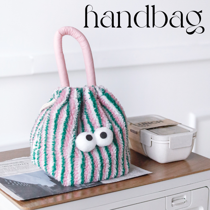 便當袋手提拎包上班族日常手拎秋冬拼色毛絨學生帶飯袋便攜飯盒袋