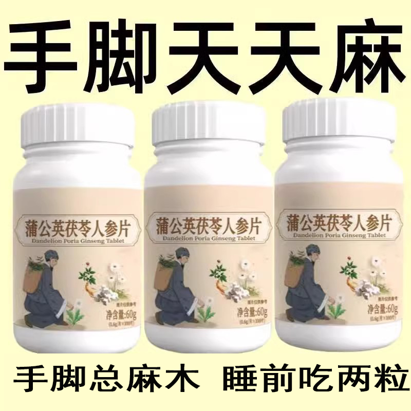 四肢麻木風濕疼痛抽筋尖麻腳掌麻木刺痛通絡正品蒲公英茯苓人參片