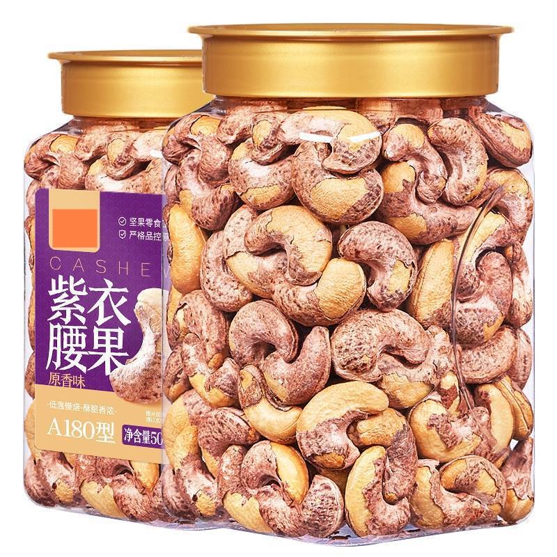 帶皮大腰果仁非500g原味鹽焗紫皮紫衣越南堅果干果零食官方旗艦店