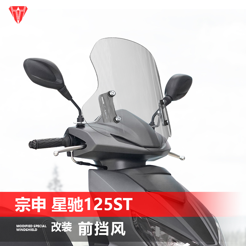 適用于宗申星馳125ST前擋風玻璃優迪125改裝透明前風擋擋雨板配件