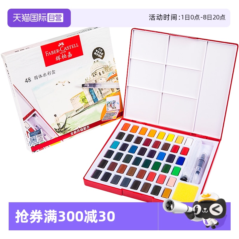 【自營】德國輝柏嘉固體水彩顏料套裝24色36色48色初學者手繪水粉顏料透明水彩畫全套工具附帶畫筆便攜組合