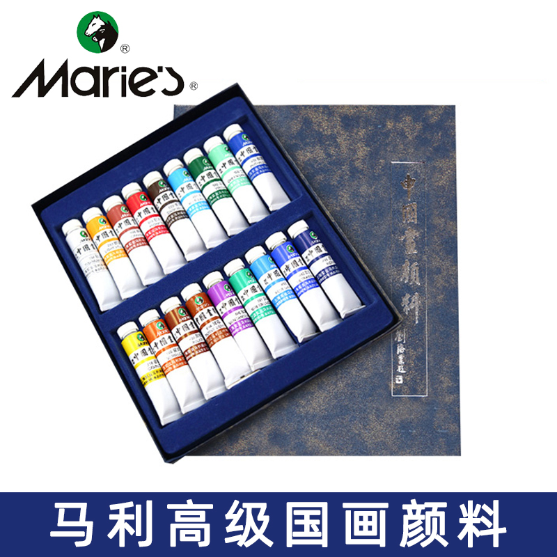 馬利高級國畫顏料藝術家系列12色18色套裝瑪麗山水寫意工筆畫牡丹成人美術專用毛筆繪畫馬利牌國畫顏料套裝