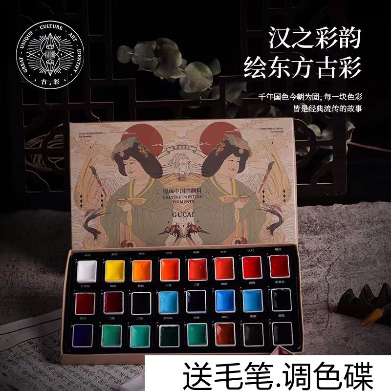 魯本斯固體國畫顏料24色12色初學者套裝中國畫古彩美術專用小學生初中生入門毛筆工具全套水墨水彩沒骨畫顏彩
