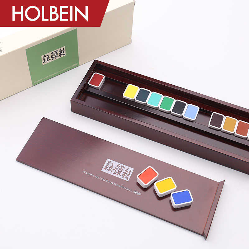 Holbein荷爾拜因 新顏彩固體國畫顏料14/28色 木盒套裝