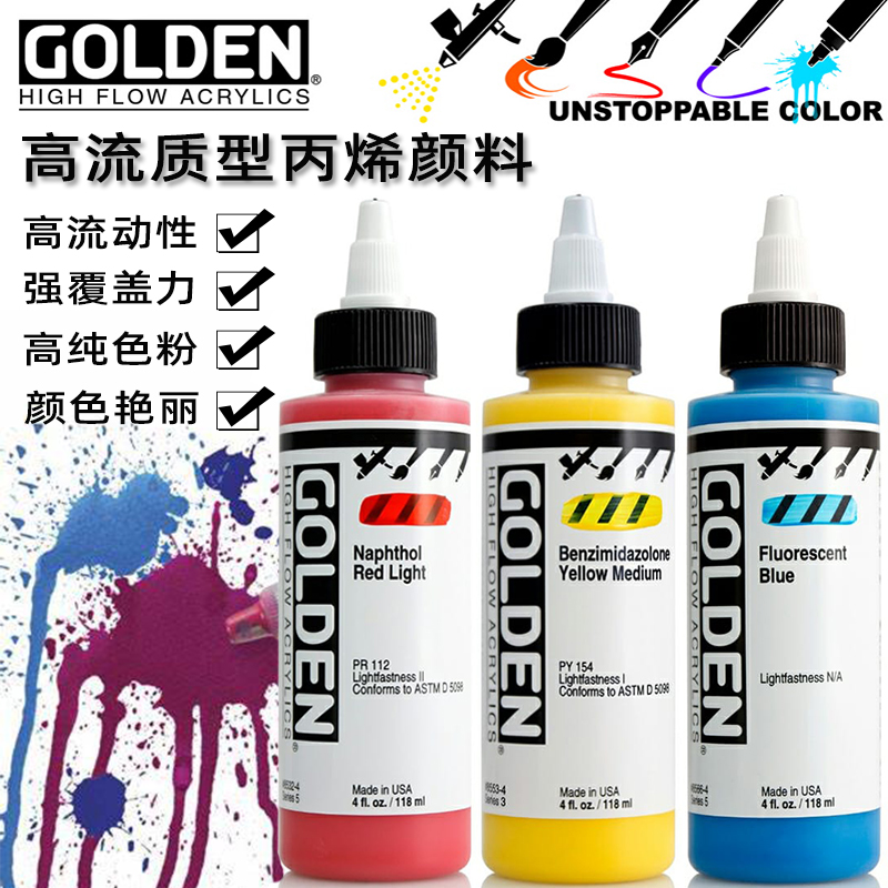 高登Golden美國進口高流質性12色24色丙烯顏料30ml上色液體丙烯墨水專用流動性亞克力顏料不掉色全系列包郵