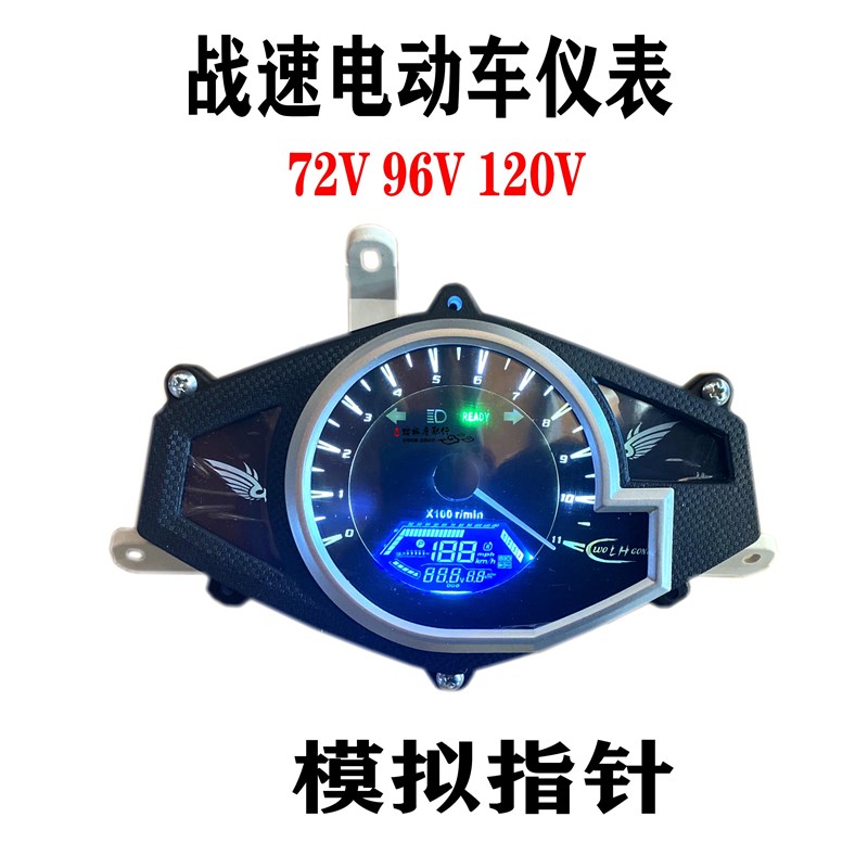 電動車液晶儀表戰速三代鬼火液晶表模擬指針+液晶表72-96-120V