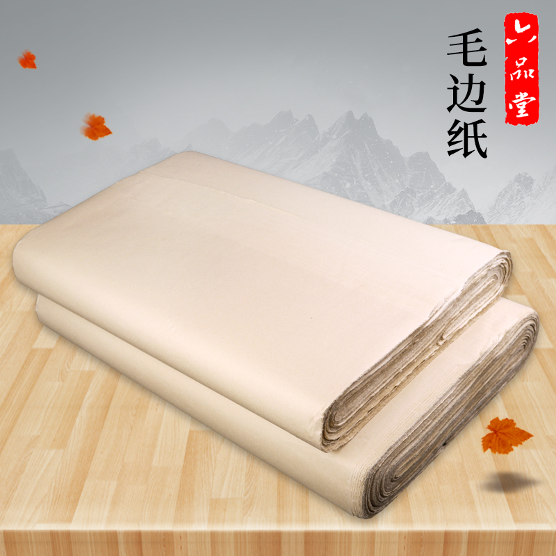 手工加厚毛邊紙 半生熟 五合文房書法毛筆字練習竹漿無格毛邊紙
