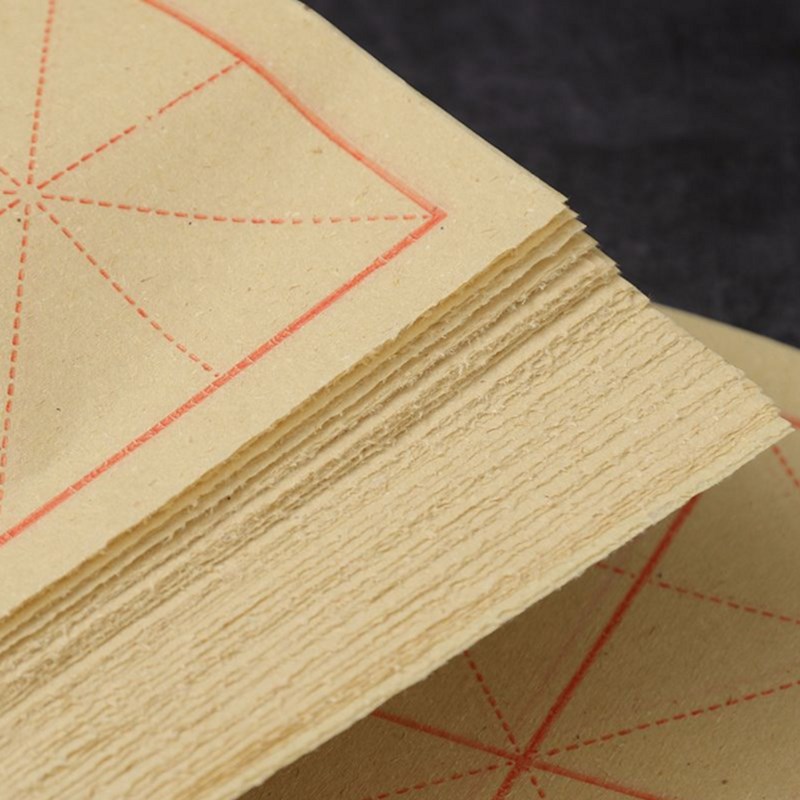 墨社今夕特制2cm方格毛邊紙古黃色簾紋小楷練習紙全熟不洇墨50張