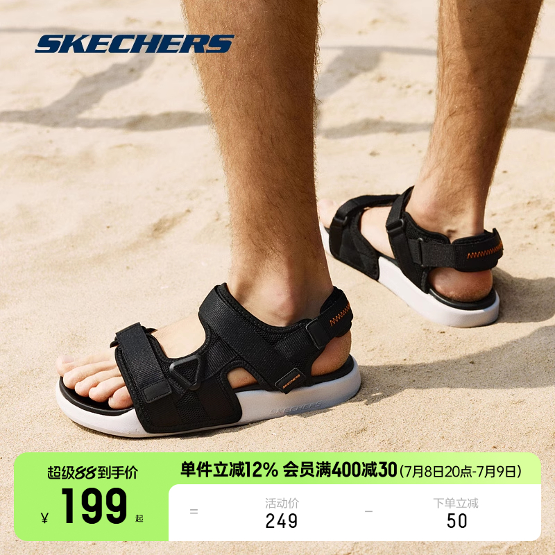 Skechers斯凱奇涼鞋厚底夏男士運動沙灘鞋魔術貼軟底戶外穿輕便鞋