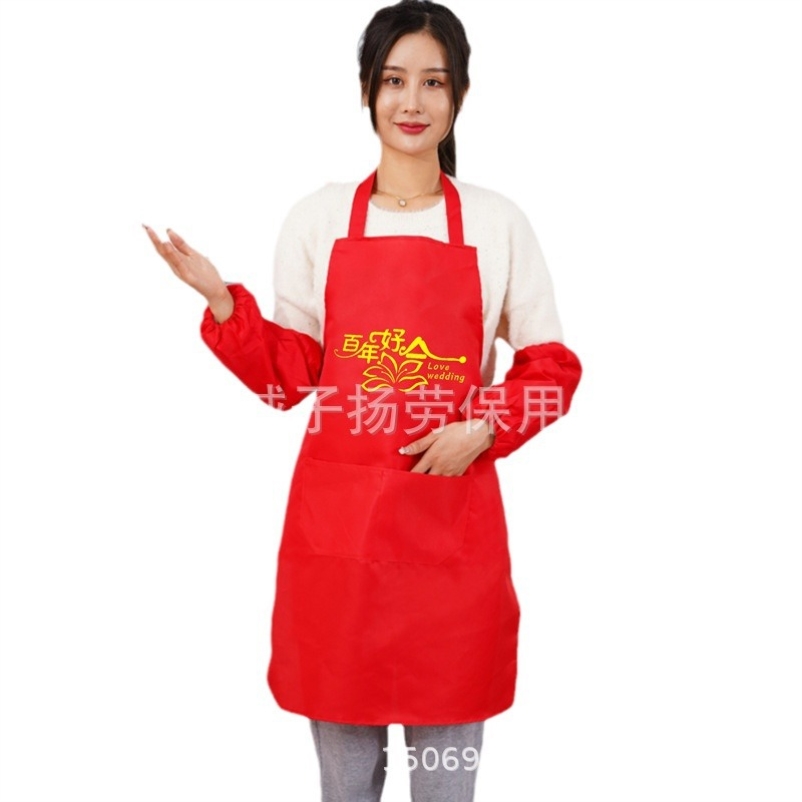 廠家批發紅色喜事婚慶宴喜宴圍裙喜慶 結婚喬遷壽宴圍腰送紅套袖