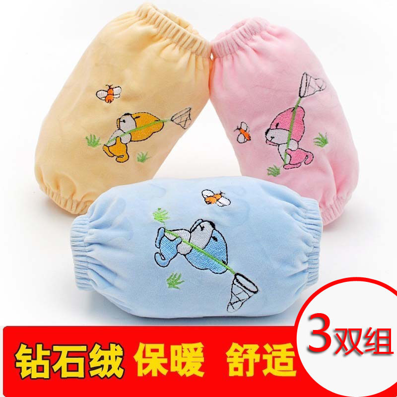 嬰兒秋冬袖套寶寶卡通可愛防污男童女童護袖套袖小孩絨款袖頭三雙