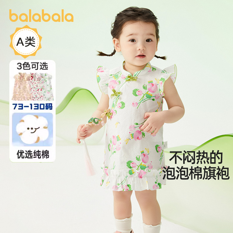 巴拉巴拉女童連衣裙嬰兒寶寶旗袍兒童新中式裙子純棉夏裝新款童裝