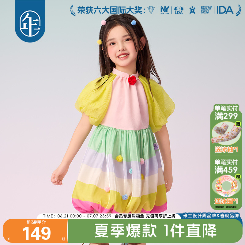 英氏女童旗袍連衣裙2025新款新中式漢服網紗公主裙江南風夏季裙子