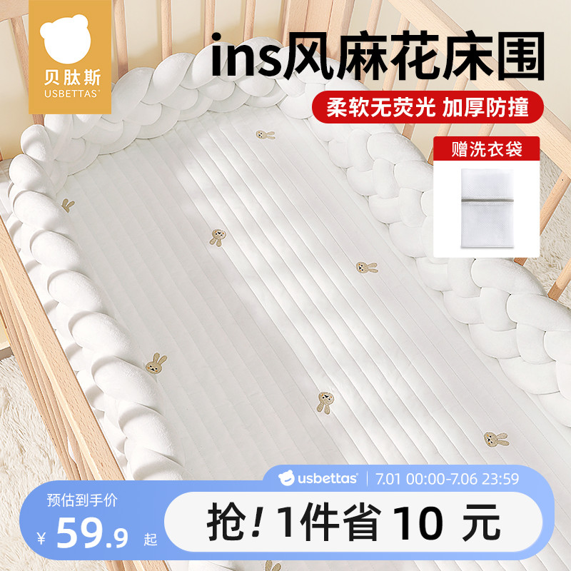 貝肽斯嬰兒床圍欄麻花軟包新生兒防撞棉寶寶拼接床四面圍擋布加厚