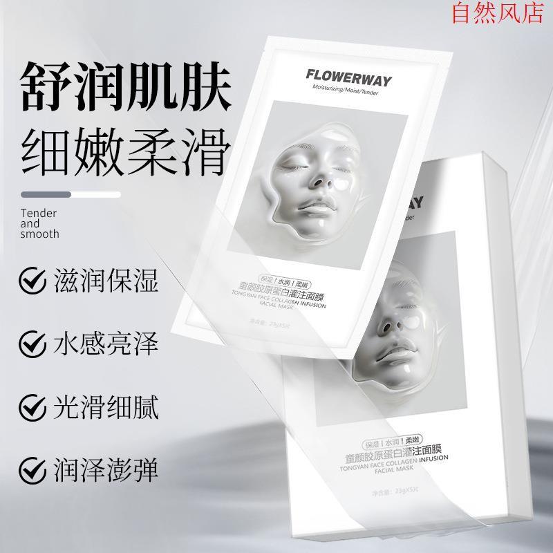 FLOWERWAY童顏膠原蛋白灌注面膜 補水保濕細膩緊致提亮膚色貼片式