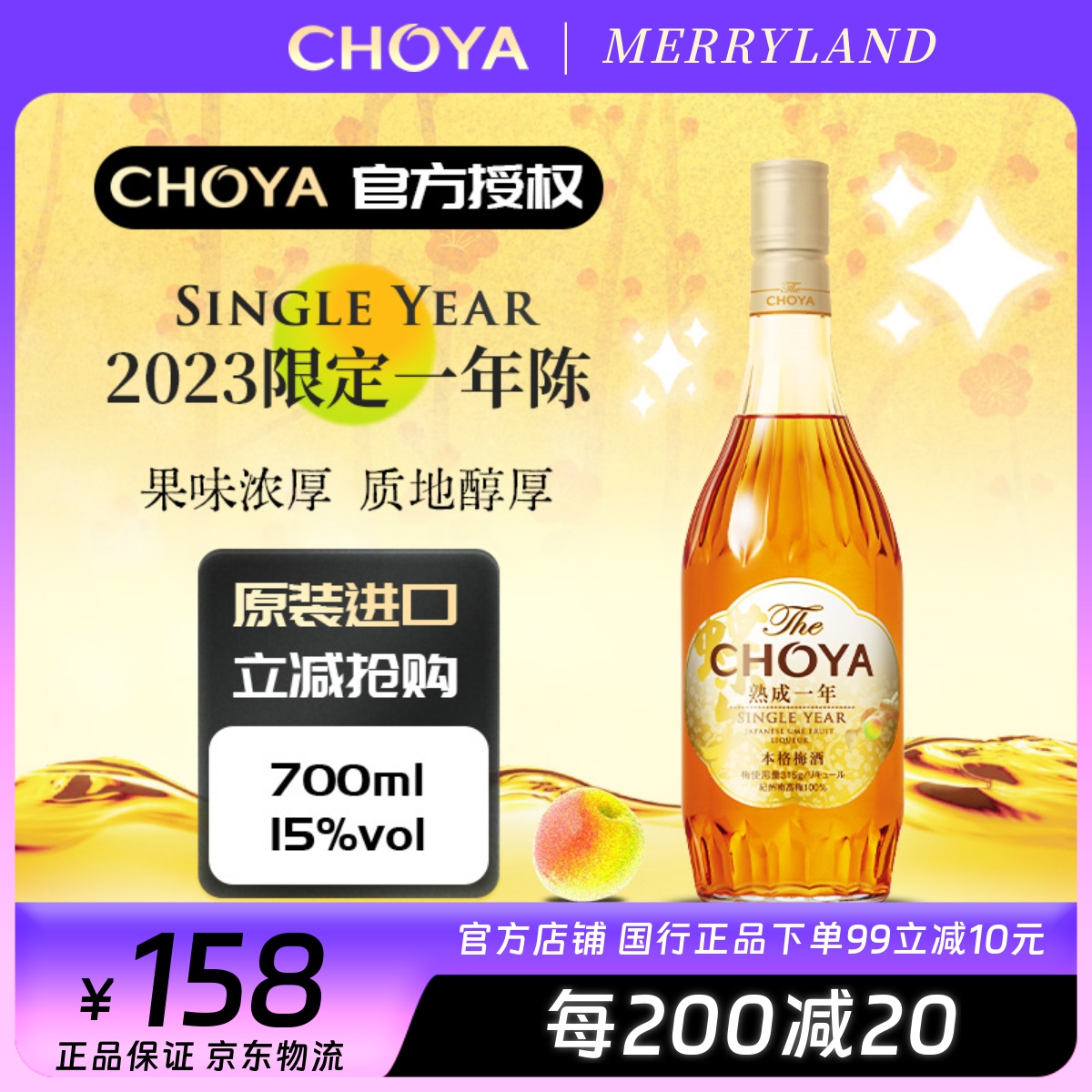 【2023年限定一年陳】蝶矢CHOYA一年陳本格梅酒700ml微酸的熟成