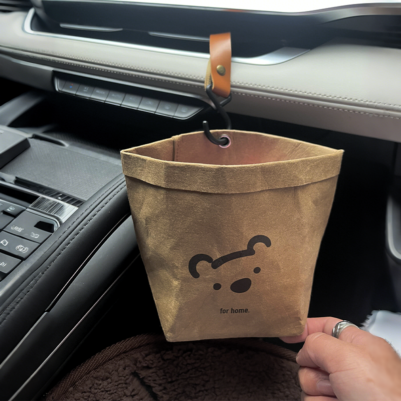 車載垃圾桶可水洗牛皮紙車載置物袋掛式收納袋汽車出風口垃圾袋